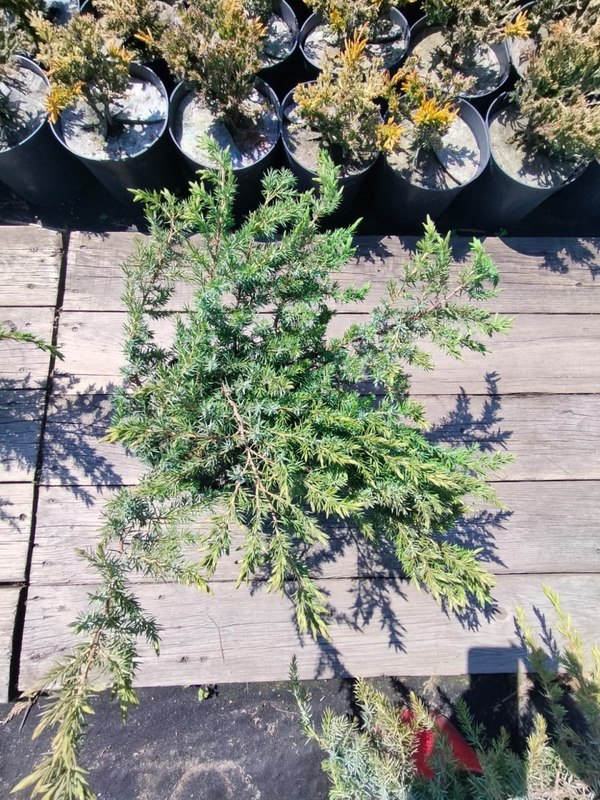 Вечнозеленый хвойный, стелящийся кустарник высотой 0,2-0,3 м. и до 0,5-0,7 м. в диаметре.