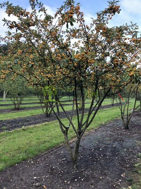 Декоративная яблоня "Wintergold" (Винтерголд) — изящное дерево с округлой кроной и особенно долгой декоративностью. Весной, в мае, покрывается массой бело-розовых цветков с лёгким ароматом, а к осени усыпано золотисто-жёлтыми плодами размером с вишню. Плоды держатся на ветвях до зимы, оставаясь ярким акцентом даже после листопада. Листва летом насыщенно-зелёная, осенью становится янтарно-жёлтой.