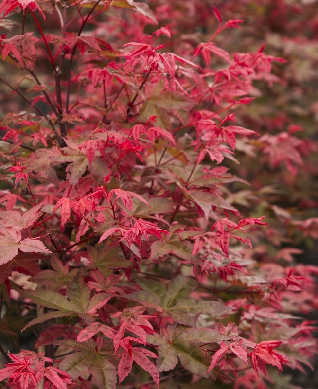 - Цвет: ярко-красные или фиолетово-красные при распускании, затем становятся красно-зелеными в течение лета и приобретают алый оттенок к осени.