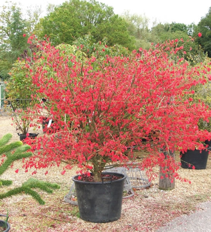 В мае лиственный кустарник обильно покрывается лимонно-зеленоватыми цветочками. Летом украшает участок плотной раскидистой кроной. Осенью его листва «воспламеняется», появляются яркие коробочки с оранжевыми семенами, которые согревают глаз почти всю зиму.
