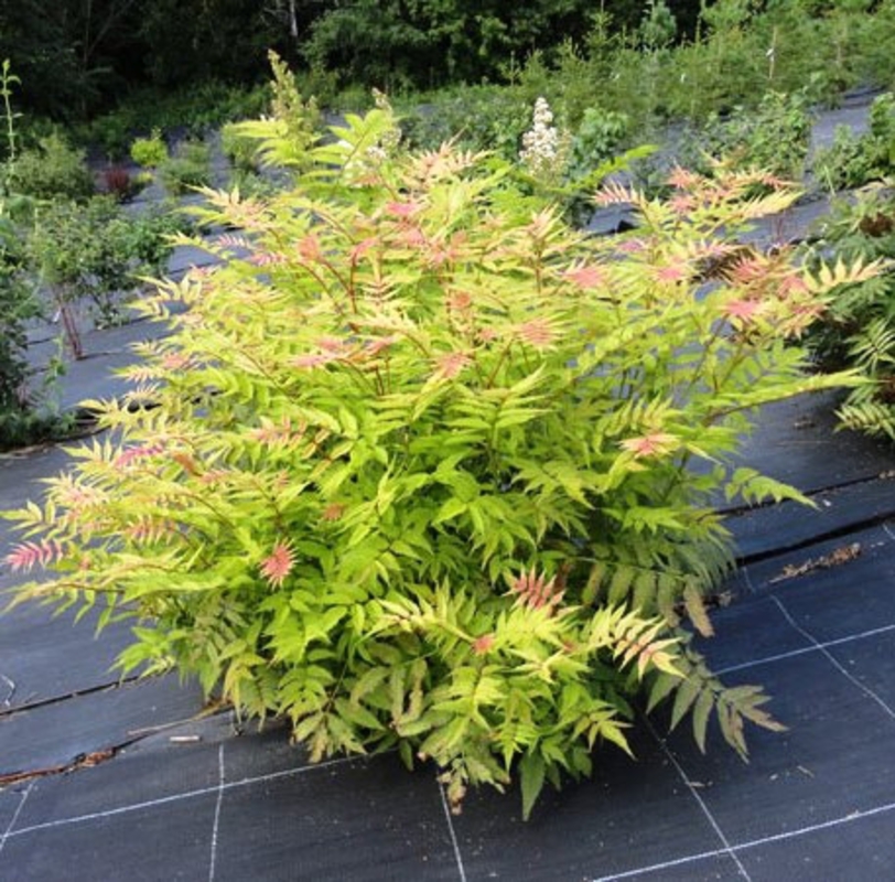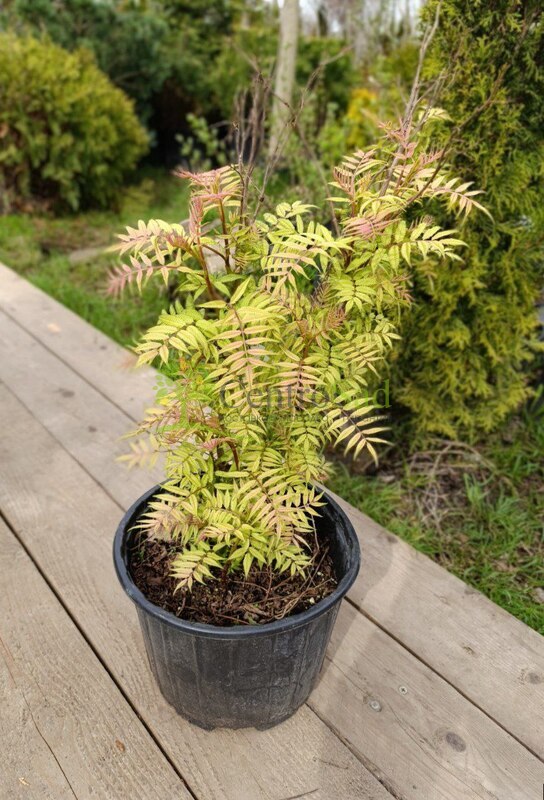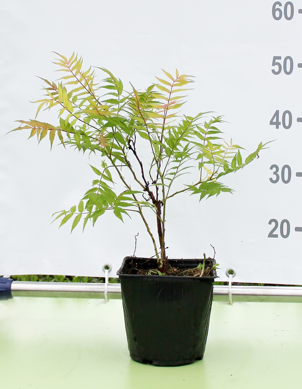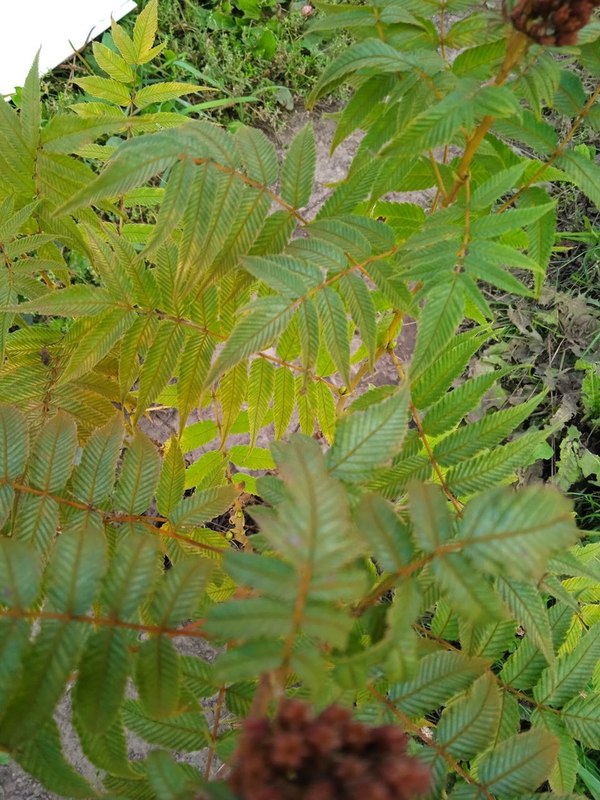 Листопадный кустарник высотой до1-1,5 метра с округлой компактной кроной. Ветви вертикально растущие, мало разветвленные. Молодые побеги зеленовато-желтые, тонкоопушенные. Листья непарноперистые, зеленовато-желтые, молодые листья с медным или красноватым оттенком. Осенью приобретают яркие оттенки от ранжевых до бордово-красных тонов. Цветки мелкие белые, с тычинками вдвое длиннее лепестков, собраны в конечные пирамидальные соцветия. Цветет с июня до августа. Корневая система поверхностная, широко распростертая. Дает много корневых отпрысков, образуя заросли. Начинает вегетацию очень рано. Сильно разрастается в ширину, часто образуя заросли из-за многочисленных порослевых побегов.Светолюбив, переносит легкое затенение, в затененных местах теряет окраску листьев и компактность кроны.Требователен к богатству и влажности почвы. Предпочитает влажные, дренированные, плодородные почвы. Выносит временное затопление. Не переносит засуху.