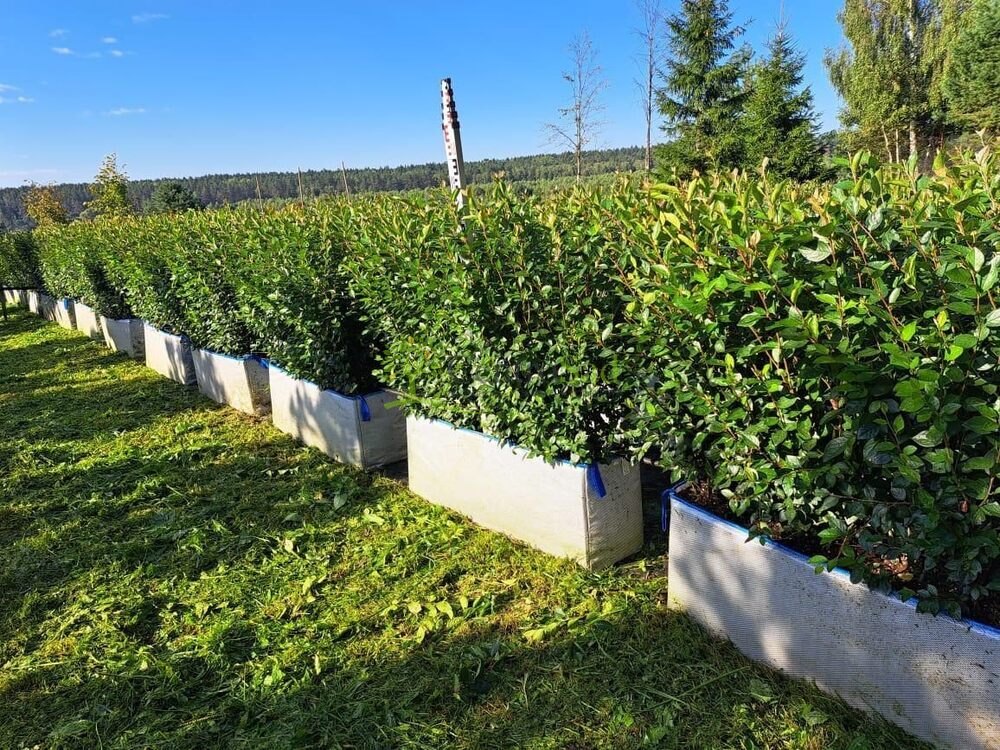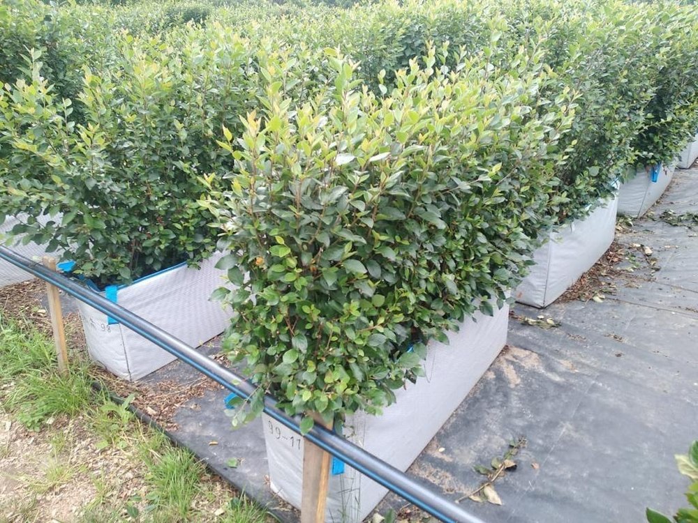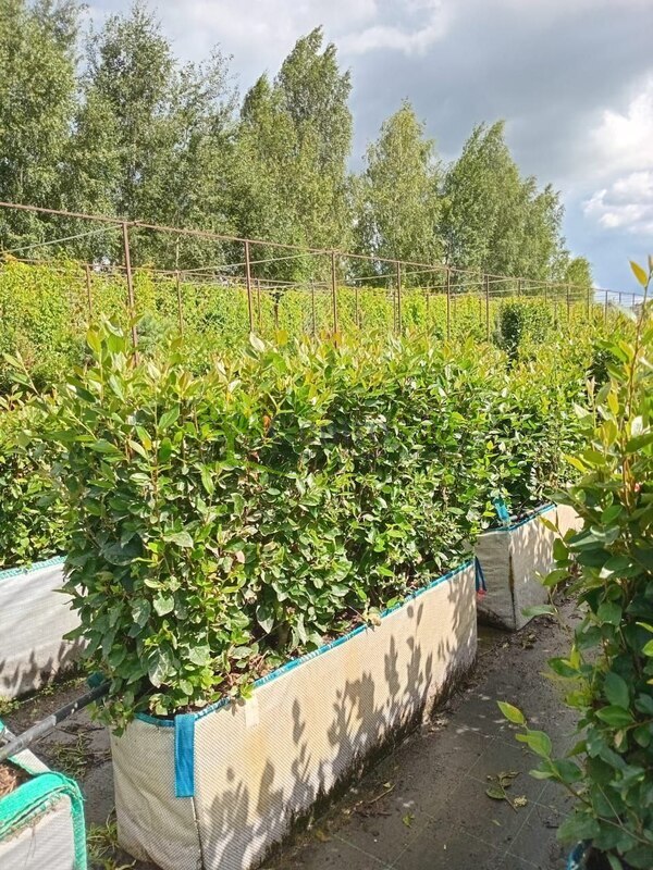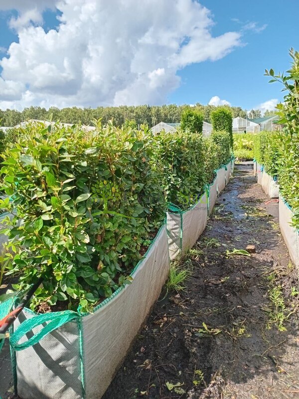 Готовый блок живой изгороди из кизильника блестящего (Cotoneaster lucidus) — это сформированный модуль длиной 40 см и высотой около 80 см, с плотной листвой и развитыми корнями. Растения высажены в линию, стрижены и уже готовы к посадке на объект. Такая изгородь моментально создаёт аккуратную зелёную границу, придаёт участку завершённый вид и подходит как для частных территорий, так и для общественных и коммерческих зон.